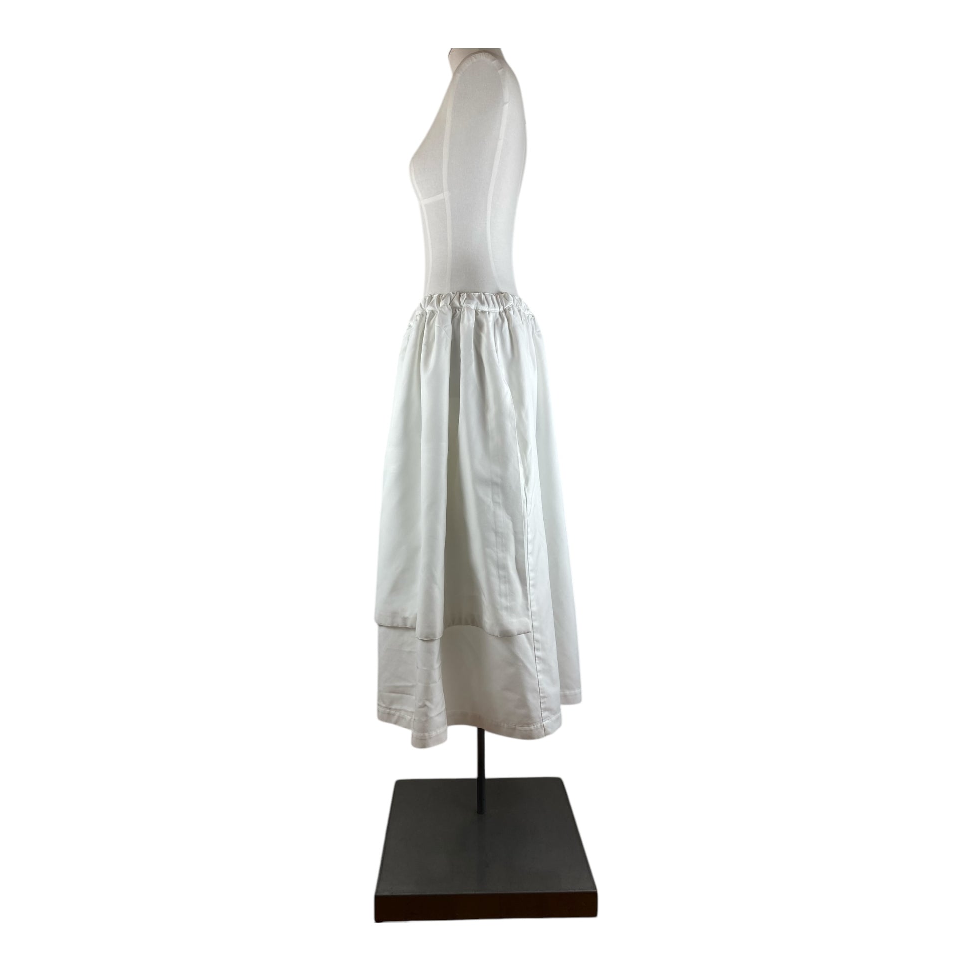 Description: A fantastic easy to wear skirt. The waist is drawstring so this skirt will fit multiple sizes. The front panel is double layered to create an apron effect.