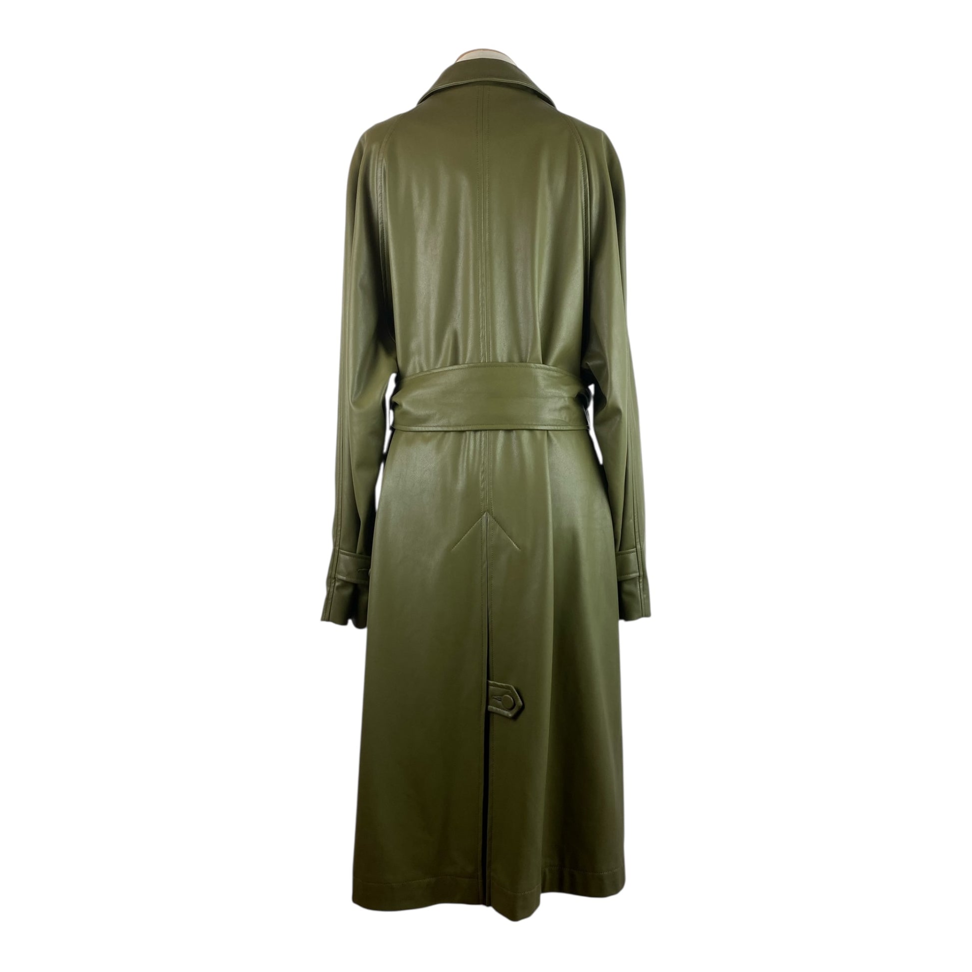 Description: A stunning coat in a rich Olive faux lether by Kate Sylvester. Covered buttons, and beautiful tailoring. Fully lined.