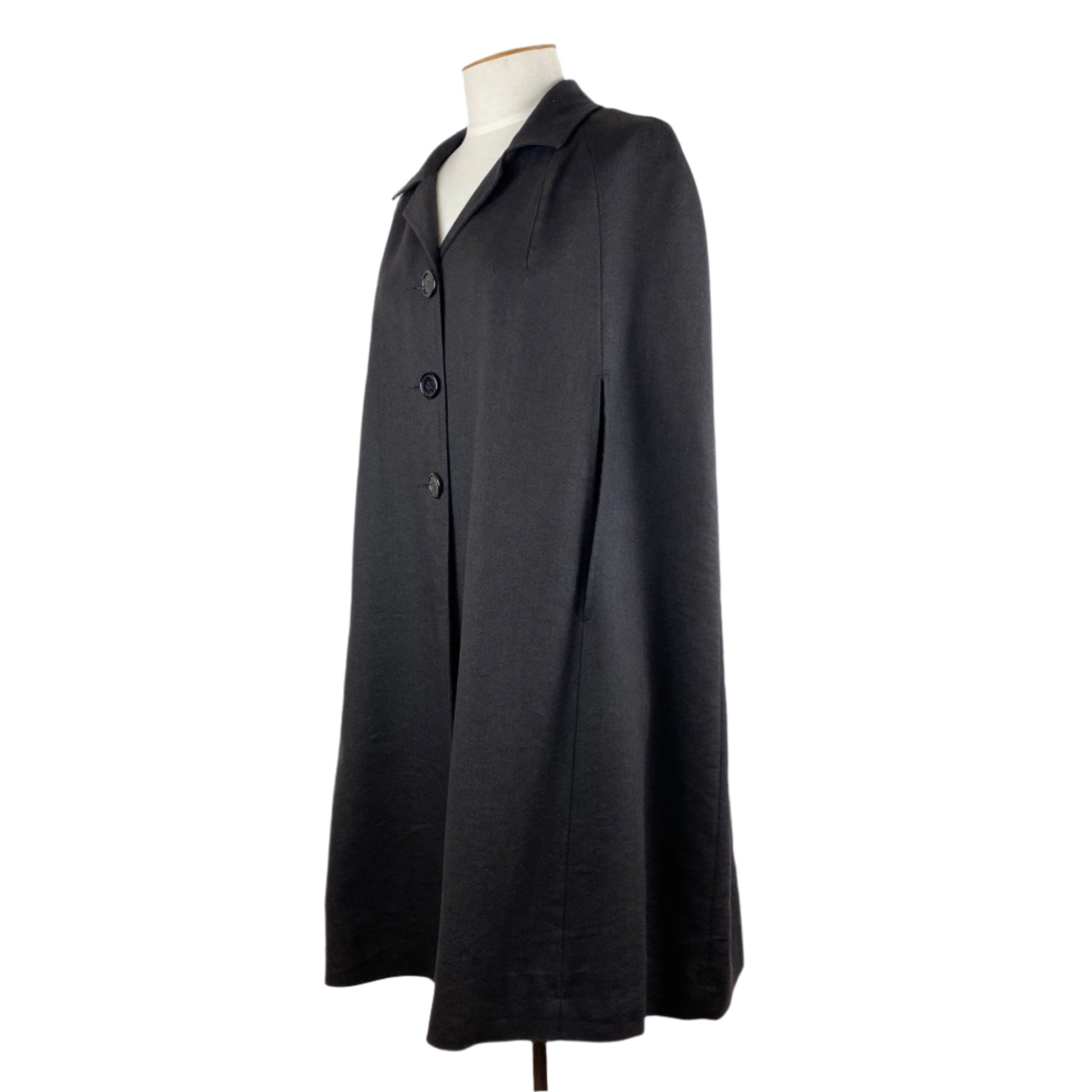 Description: A stunning cape by designer MIRANDA BROWN. A timeless garment that is easy to wear, and turns heads. Fully lined, and Made in New Zealand.