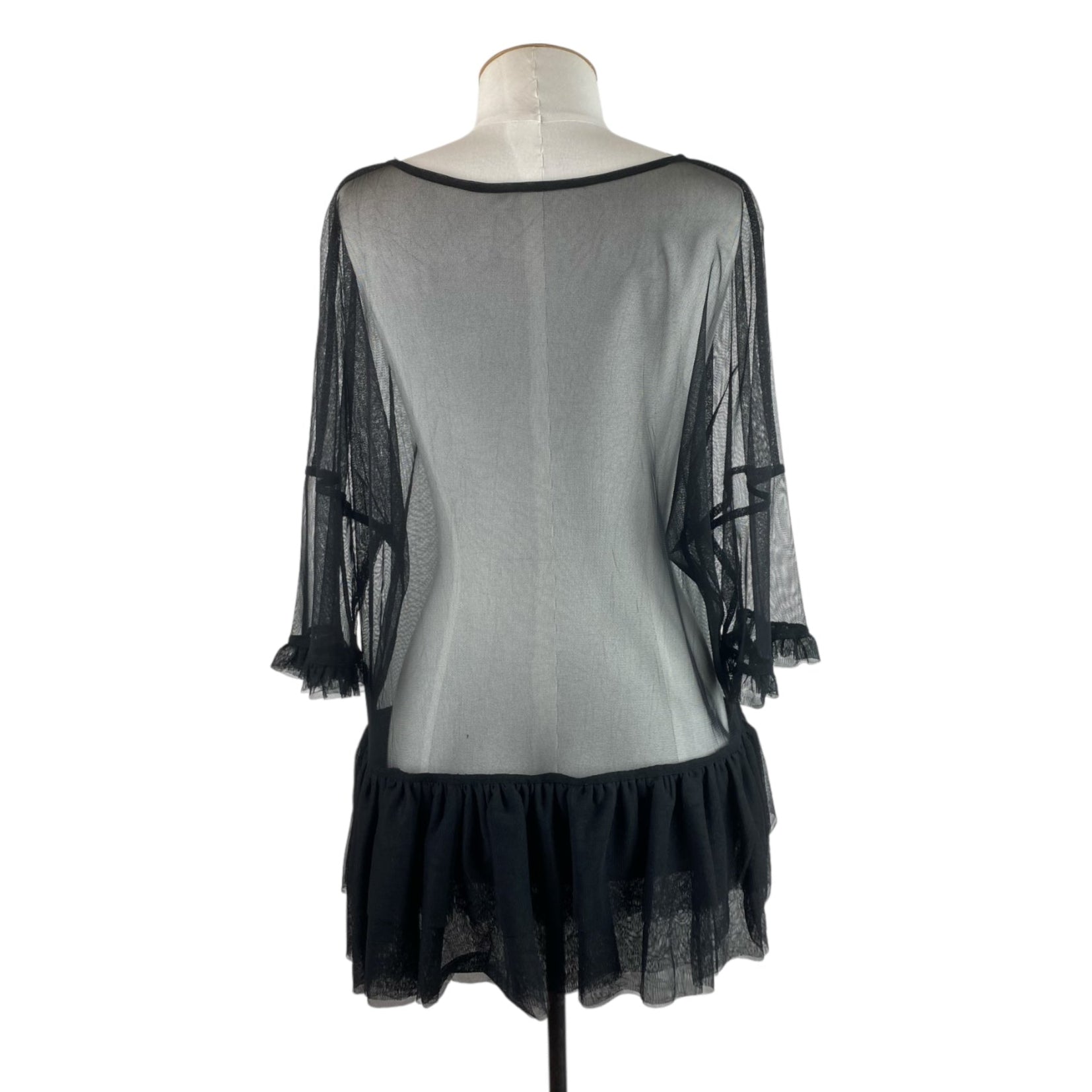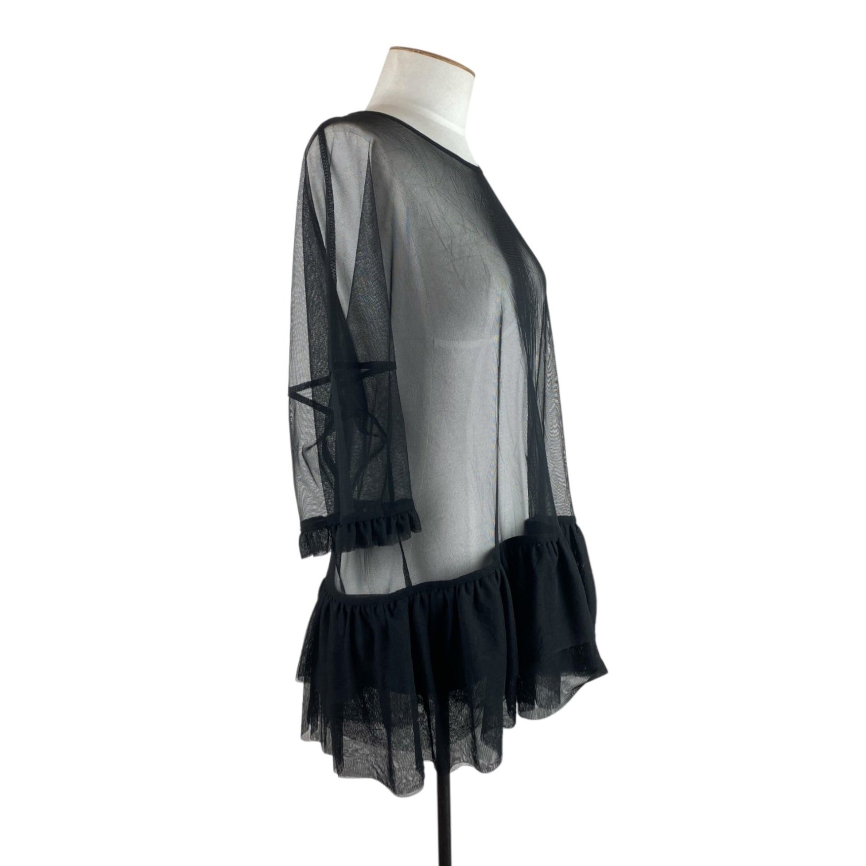 Description: A gorgeous sheer top with a relaxed fit and frill detail on sleeve and hem. A great piece to style a variety of ways.